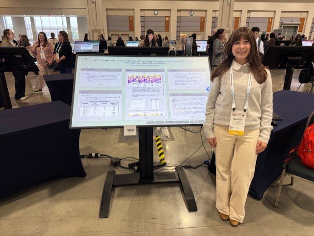 We presented at the American Speech Language-Hearing Association (ASHA) Convention in Washington, D.C. where Honors Thesis student Isabella DeNault shared her work on “The Contributions of Phonological Complexity to Individual Differences in Word Learning in Late-Talking Toddlers” (DeNault, Benham, & Smith).